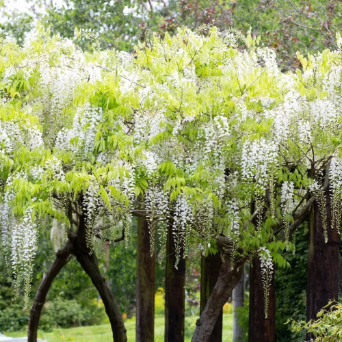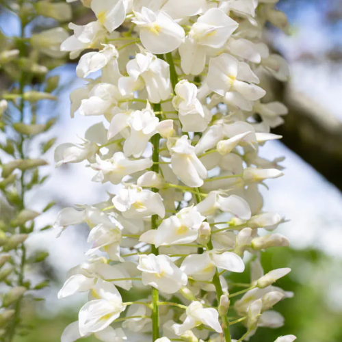 Glicina albă – Wisteria Snow Showers Floribunda – plante cățărătoare cu flori parfumate