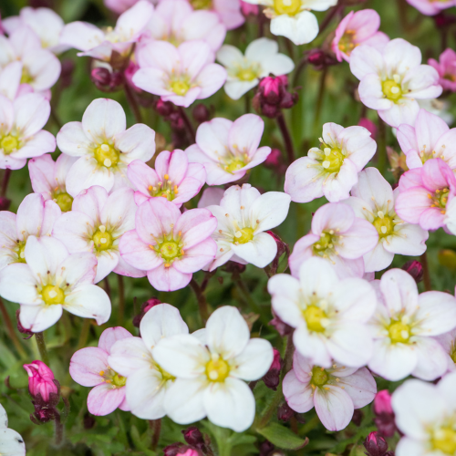 Saxifraga Apple Blossom Ice – plantă perenă de stâncării acoperitoare de sol